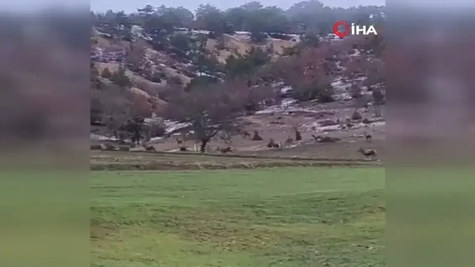Ankara’nın Beypazarı ilçesinde yaklaşık 100 yaban geyiği, açlıkla mücadele ederek doğal yaşam alanlarından ayrıldı ve Beypazarı-Nallıhan Karayolu’na indi.