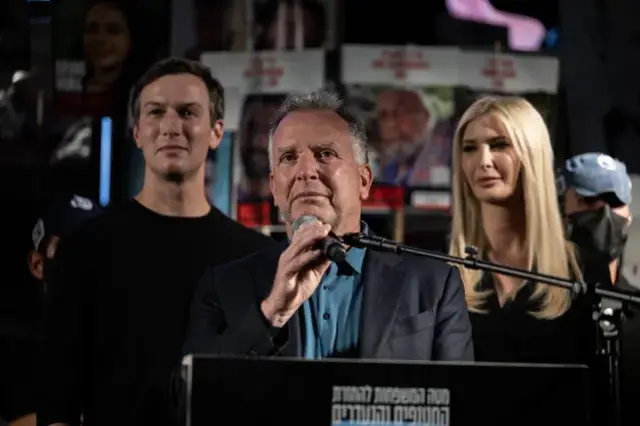 Gazze’de ateşkesin sağlanmasının ardından İsrail’e gelen ABD Başkanı Donald Trump’ın Orta Doğu Özel Temsilcisi Steve Witkoff, Tel Aviv’de İsrailli esirlerin yakınlarının “Esirler Meydanı” adı verilen meydanda düzenlediği gösteriye katıldı.
