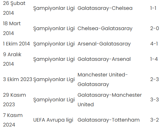 GALATASARAY’IN İNGİLİZ TAKIMLARINA KARŞI PERFORMANSI