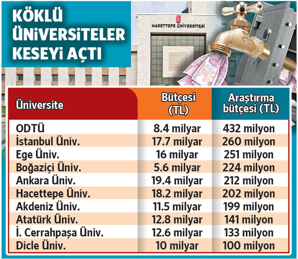 Hacettepe Üniversitesi, Hazine’den 18.2 milyar lira alacak. Üniversite, öğrencilerden de 152 milyon lirası yurt ve yatak ücreti olmak üzere 398 milyon lira gelir elde etmeyi planladı.