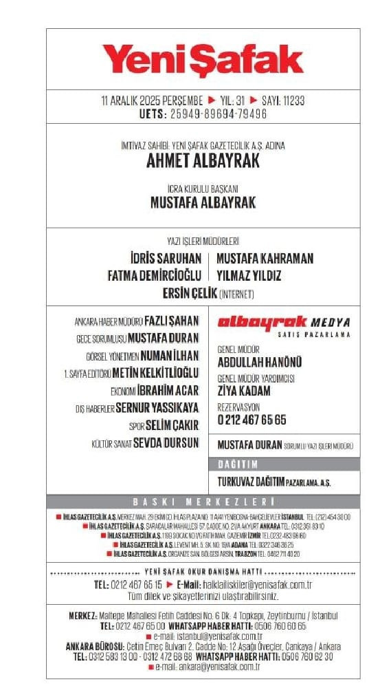 Yeni Şafak yönetimi tarafından henüz resmi bir açıklama yapılmazken, değişikliğin nedenine ilişkin bilgi paylaşılmadı.